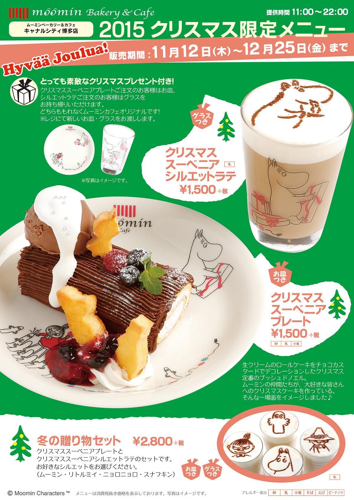 スポンジケーキで型をとったムーミンの仲間たちがXmasを演出してくれています☆