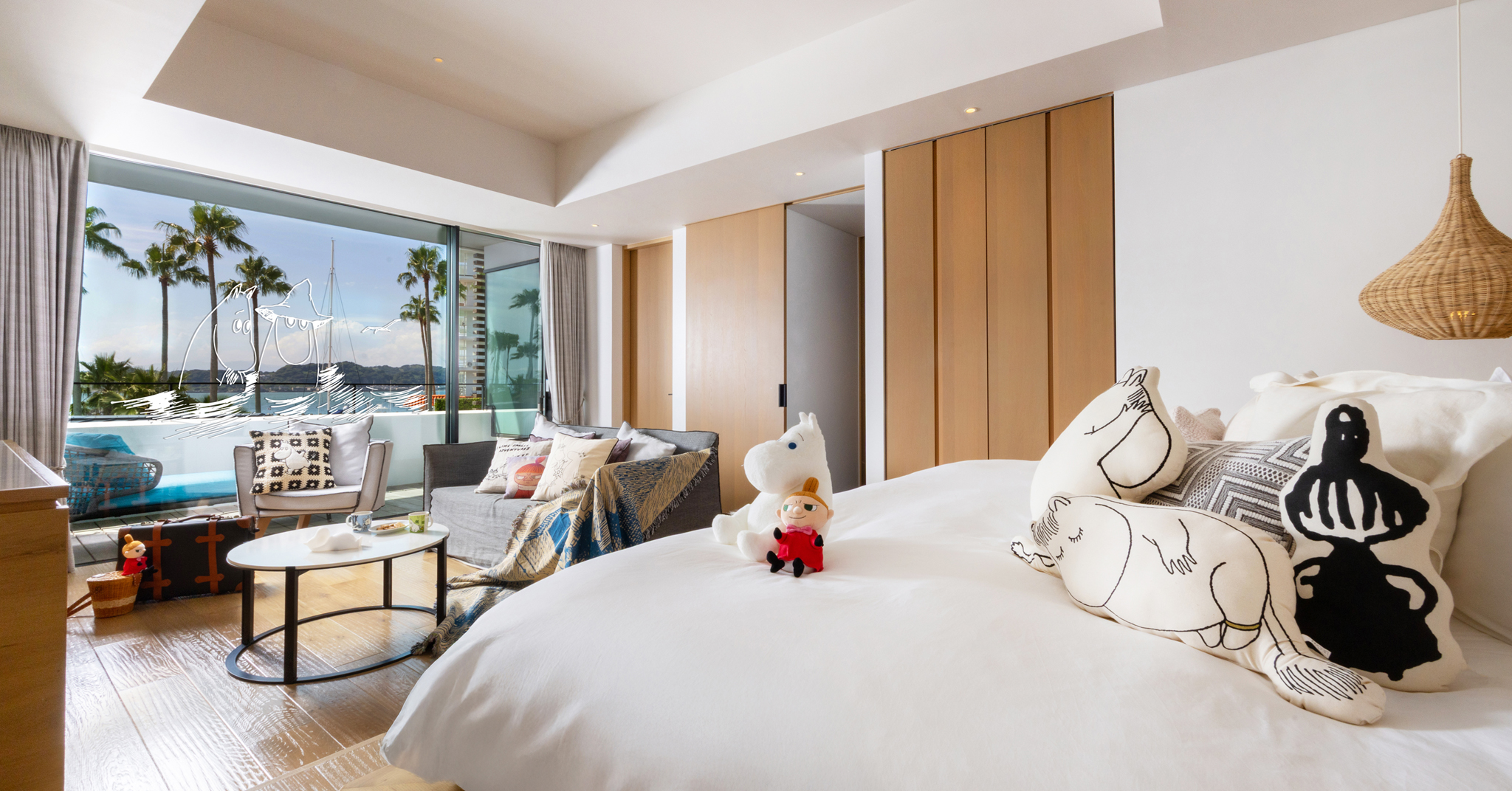 ムーミンをテーマにした特別客室「ムーミン スペシャルルーム」を各施設1日1室限定でご用意。室内には、ムーミン谷のキャラクターのアートやアイテムがゲストをお迎えする空間を施し、リビエラ逗子マリーナでしか手に入らない限定ムーミングッズ付。ムーミンたちが過ごしたリゾート地“リビエラ”に思いを馳せながら、秋のリゾートバカンスならではの非日常なひとときをお過ごしください。
