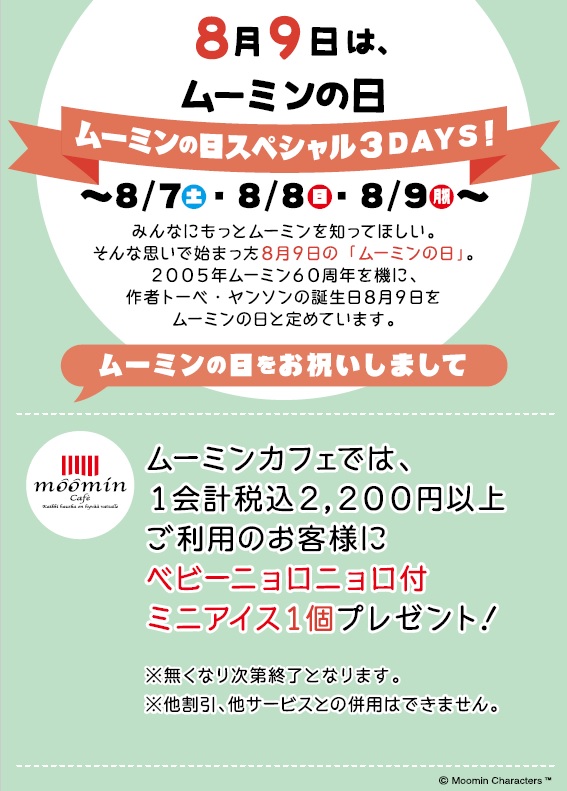 8/7(土)~8/9(月)はムーミンの日スペシャル3DAYS!