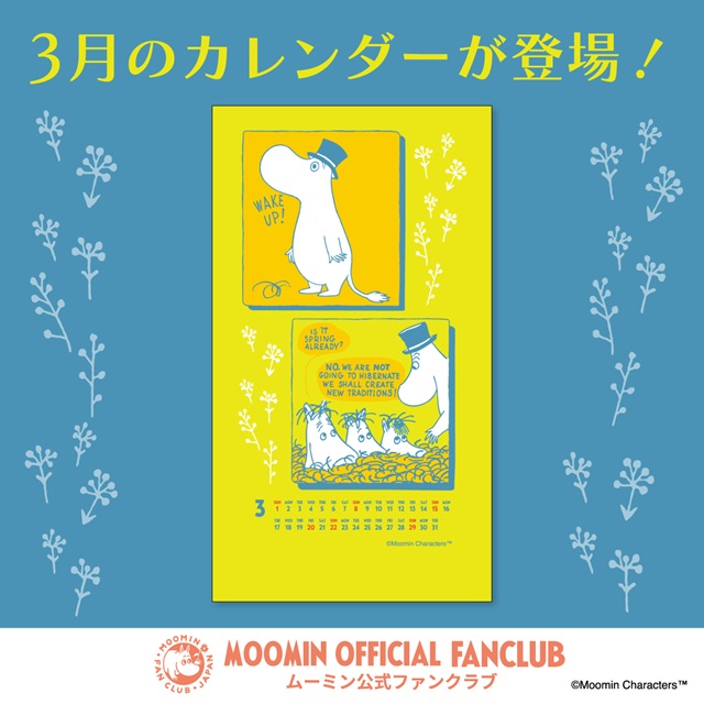 ムーミン公式ファンクラブの、全会員がダウンロードできる壁紙「3月カレンダーデザイン」が登場!