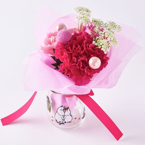 かわいらしいブーケをムーミンの小瓶に入れて飾れますよ♪