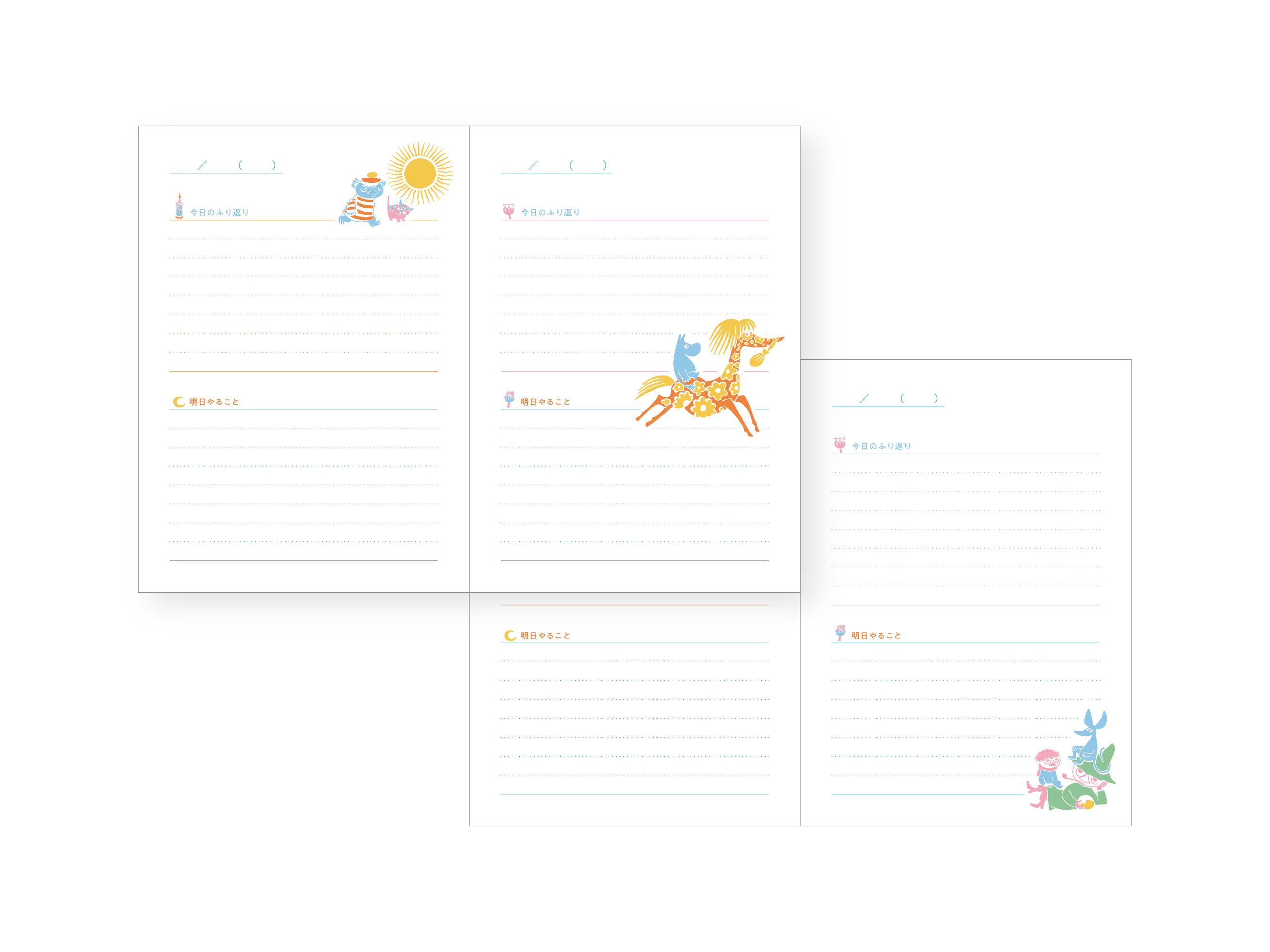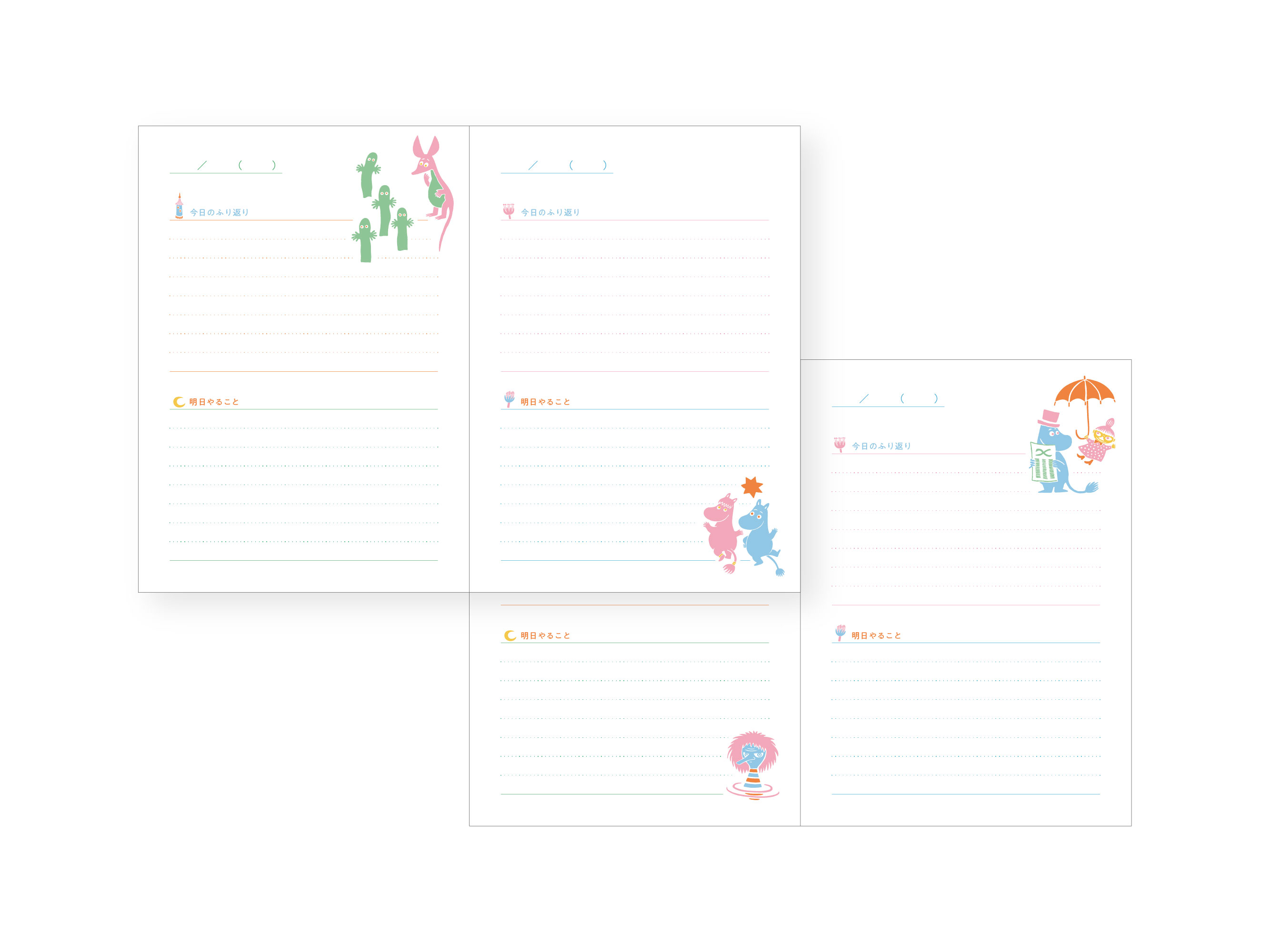 ・製品名 :夜とカフェオレと日記帳80周年限定(スナフキン/ホワイト、ムーミン/ストライプ、リトルミイ/ピンク)