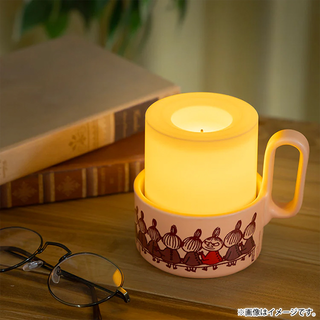 マグカップ型ホルダーにキャンドルが収まり、温かみのあるあかりを楽しめます。
