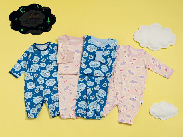 ベビーツーウェイオールと、キッズパジャマは蓄光入りプリントを使用しており、お子さまとのおうち時間が楽しくなるようなデザインです。