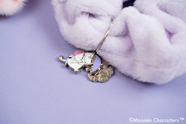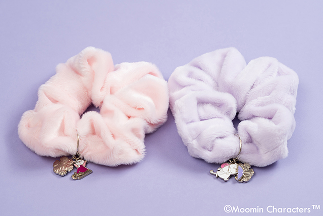 やわらかな素材感のシュシュ。ピンクにはリトルミイ、パープルにはムーミンママのチャーム付き。ヘアアレンジに使用するのはもちろん、手首に付けてコーディネートのポイントにするのもおすすめです。