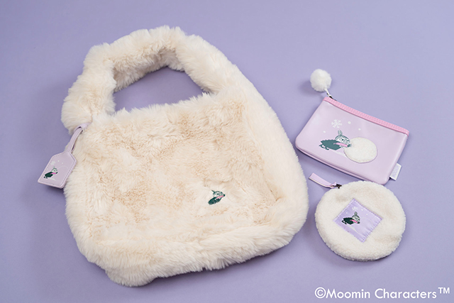 雪玉をつくるリトルミイのアートをモチーフにしたシリーズ。ふわふわのファーバッグと、リトルミイがデザインされたチャームは、冬のコーディネートに遊び心を添えるアクセントに。雪玉のようなまん丸フォルムのラウンドボアポーチと、雪玉部分がふんわり素材で仕上げられたフラットポーチも、揃えて持ちたくなるアイテムです。