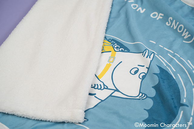ふんわりとしたシープボア素材が特長のひざ掛け。ムーミンとリトルミイ柄のパープルと、ムーミンママとクリップダッス柄のブルーの2色展開です。インテリアにもなじみやすい落ち着いたカラーで、肌ざわりがやさしく、冷えやすい季節のリビングやオフィスで活躍します。