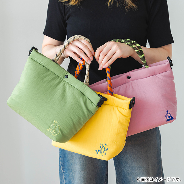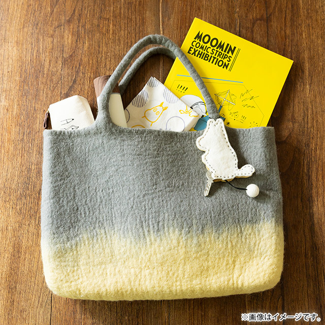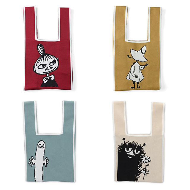 可愛らしいニット編みで表現されたムーミンたちのデザインがかわいい、マルシェバッグです。