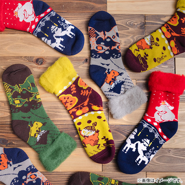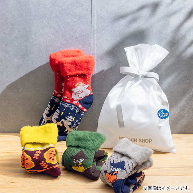 北欧らしい組み合わせのカラーに、編み模様で描かれたムーミンたちが冬気分を盛り上げます。