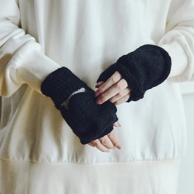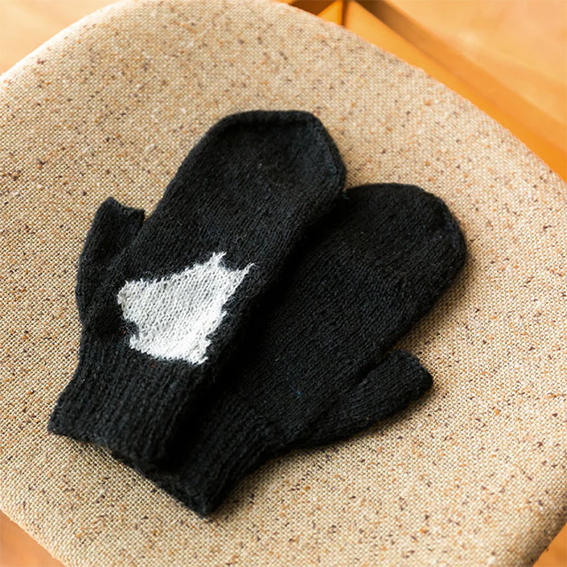 ムーミンのシルエットが編みこまれたニットミトンです。
