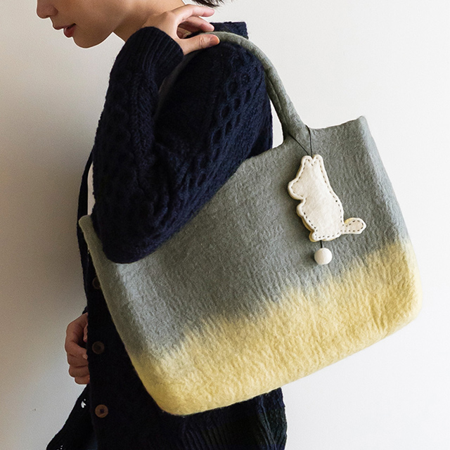 温かみのあるコクーンシェイプのフェルトバッグです。