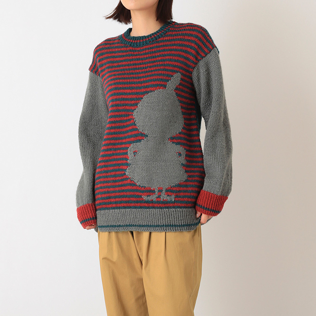 シンプルながら大胆に配置したキャラクターのシルエットがアクセントになる、遊び心をくすぐる手編みのトップス。