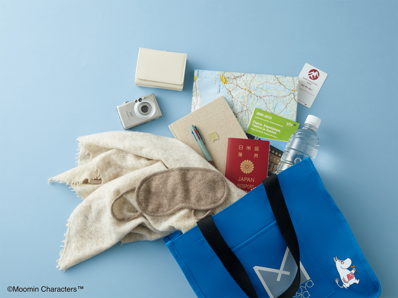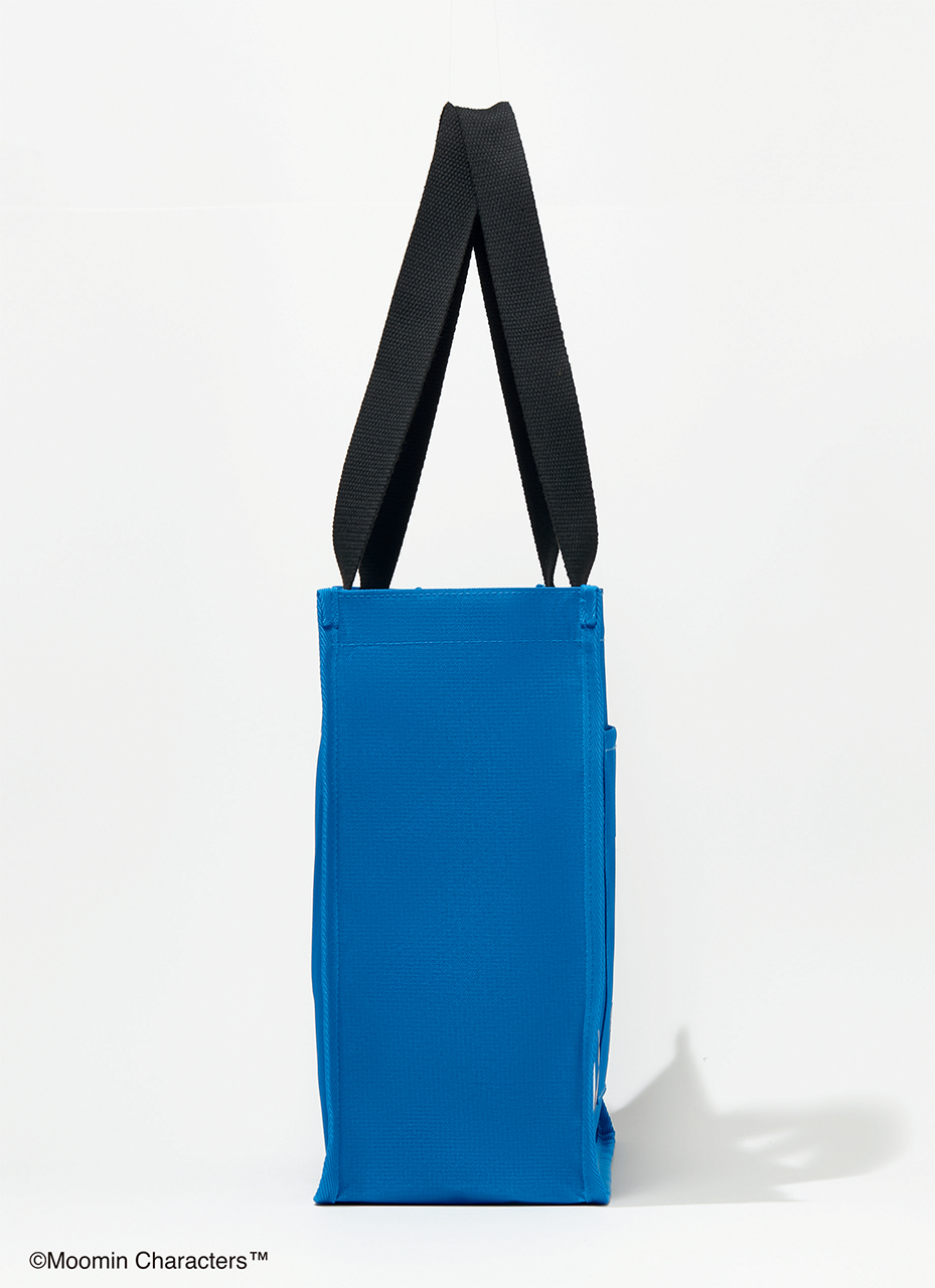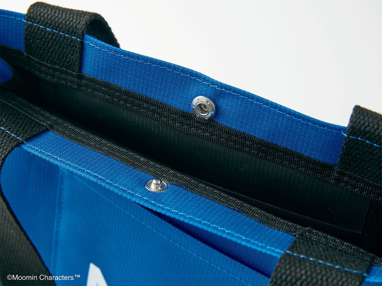 フロントポケットには当時の松屋のロゴ“Mマーク”を配し、前面と後面にはムーミンたちがお買い物を楽しんでいるような愛らしいアートをあしらいました。