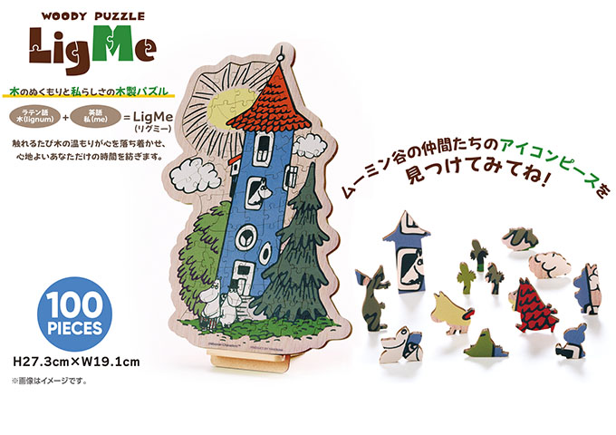ラテン語の「木」の意味である「Lignum(リグナム)」と英語の「私」の「Me(ミー)」から生まれた「LigMe(リグミー)」。木のぬくもりと私らしさを感じられる木製ジグソーパズルです。木のぬくもりを感じる質感のピースには、作品を象徴するアイコンピースが含まれています。