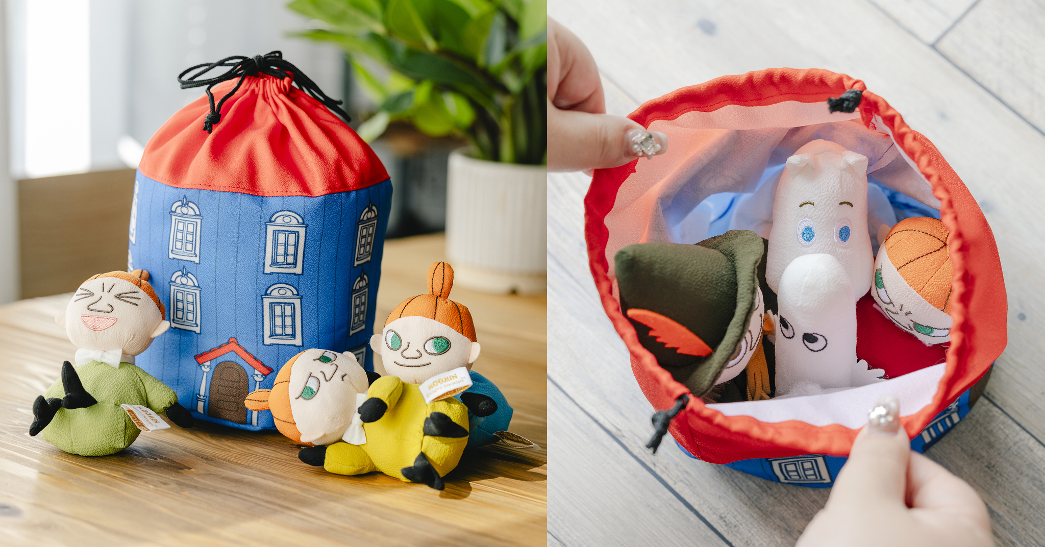 3つのデザインを縦につなげるとムーミンやしきが完成する、遊び心あふれるデザインです。