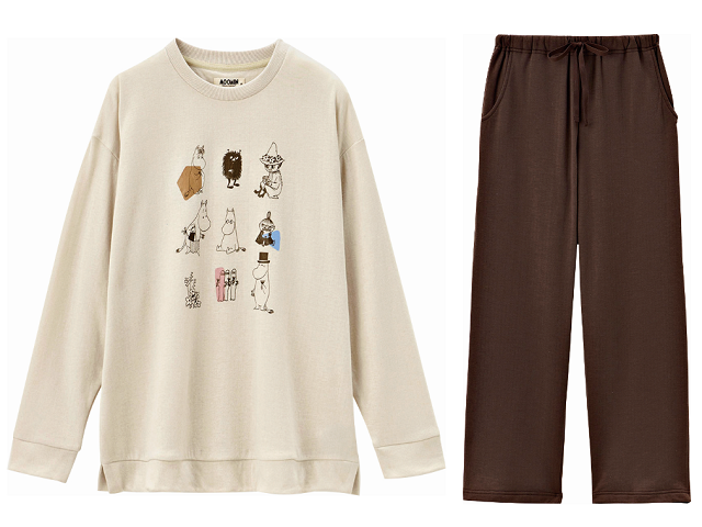 ムーミンたちのプリント柄がかわいいルームウェアです。