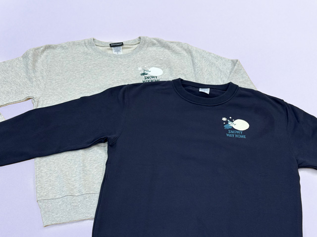 ほどよい厚みが魅力のスウェット。グレーとネイビーの2色展開で、胸元のリトルミイがさりげないアクセントになっています。カジュアルなデイリーコーデはもちろん、リラックスタイムにも活躍します。