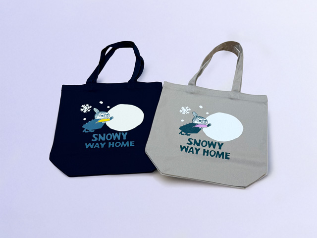 リトルミイのアートとスノーウィーウェイホームのロゴが大きくデザインされたトートバッグ。底マチ付きでA4サイズもすっきり収まります。デイリー使いからお出かけまで幅広く活躍するアイテムです。