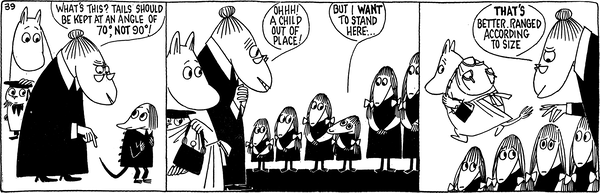 孤児院の使命は立派な市民を育成すること。身長順に並ばされ、しっぽの角度まで管理されている様子を見たムーミンママは、ここには預けたくないと心を決め、「おうちに帰ろう」と言いました。ムーミンママの愛情深さ、潔さが伝わる感動の展開……! ですが、ここからが試練の始まりでした。