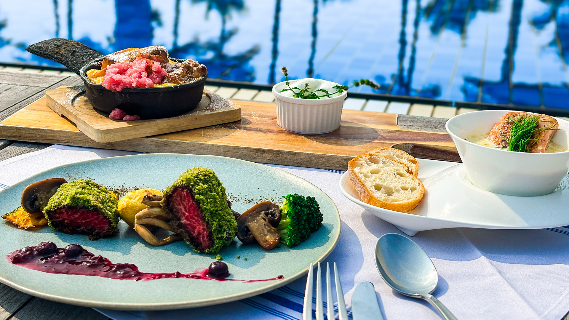 【Moomin RIVIERA VACANCES】開催期間中は、リビエラ逗子マリーナ内のレストランにてイベント期間限定のメニューもご用意しております。「ムーミン」の物語がもつ世界観をイメージし、リビエラ逗子マリーナならではの旬の地元食材をふんだんに使用し“ほっと温かなひととき”を表現しています。レストラン「マリブファーム 逗子マリーナ」の店内では「ムーミン」もお出迎え。ぜひお立ち寄りください。
