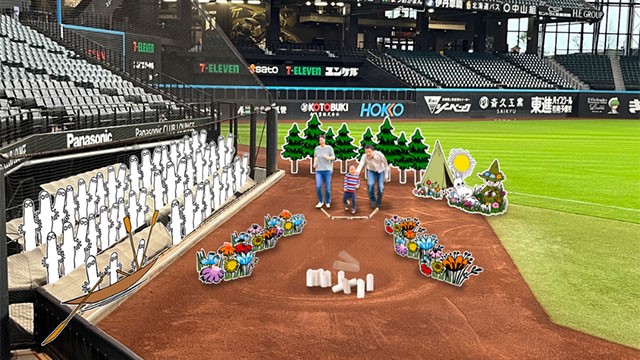 普段入ることのできないフィールドでムーミンたちに囲まれながら北欧生まれのあそび「モルック」で楽しく遊べるモルックフィールド。