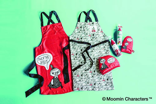 3.エプロン(レッド、ホワイト) 各¥3,800、ティーコージー¥2,400、ディッシュクロス(レッド、グリーン/ 2 枚セット) 各¥700、ミトン¥1,600