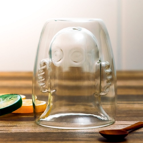 冷たい飲み物を入れても結露しにくく、温かい飲み物を入れてもグラスが熱くなりにくい、二重構造のグラスです。ニョロニョロの姿を模した形状は、ミルクなどを入れるとフォルムがはっきり浮かんできます。