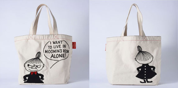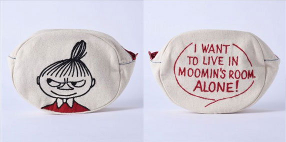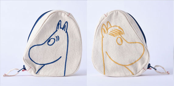 ムーミンとスノークのおじょうさんの横顔に沿っているダイカットポーチ。