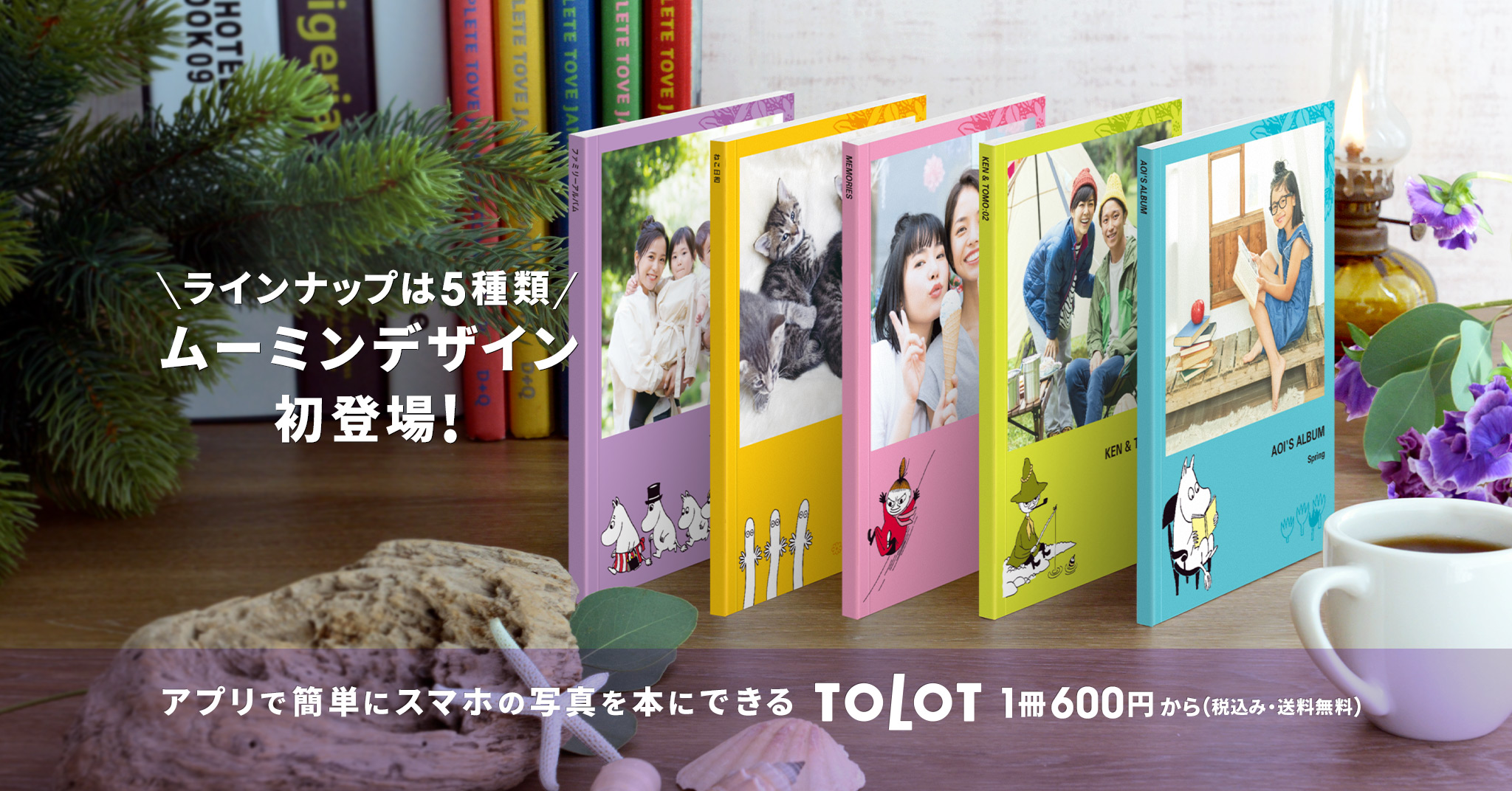 スマホ内の思い出の写真を手軽にフォトブックにできる「TOLOT」とムーミンが初コラボ!アプリで簡単に、ムーミン谷の仲間たちの表紙でフォトブックが作れます。