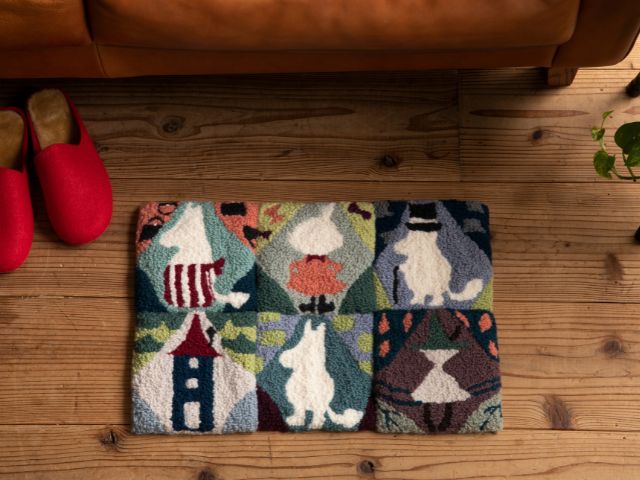布端を処理したら、タペストリー風にも飾ることができます。お好きなキャラクターをランチョンマットにワンポイント刺しゅうしても、暮らしの中で“ムーミン”を感じられてかわいいですよ。クロスステッチャーさんにも大人気の刺しゅうキットです。