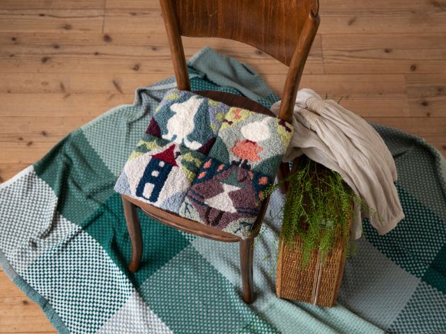 「ムーミン パンチニードル」で通年使えるチェアパッドに仕立てる