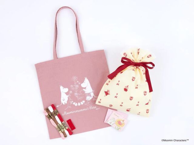 刺しゅうをして完成したトートバッグに、お花やおクッキー缶などを入れてプレゼントしてもよさそうです。ブローチをつけてムーミンづくしでも可愛いかも!ストロベリークリームとソイラテの2色展開でご用意しています。