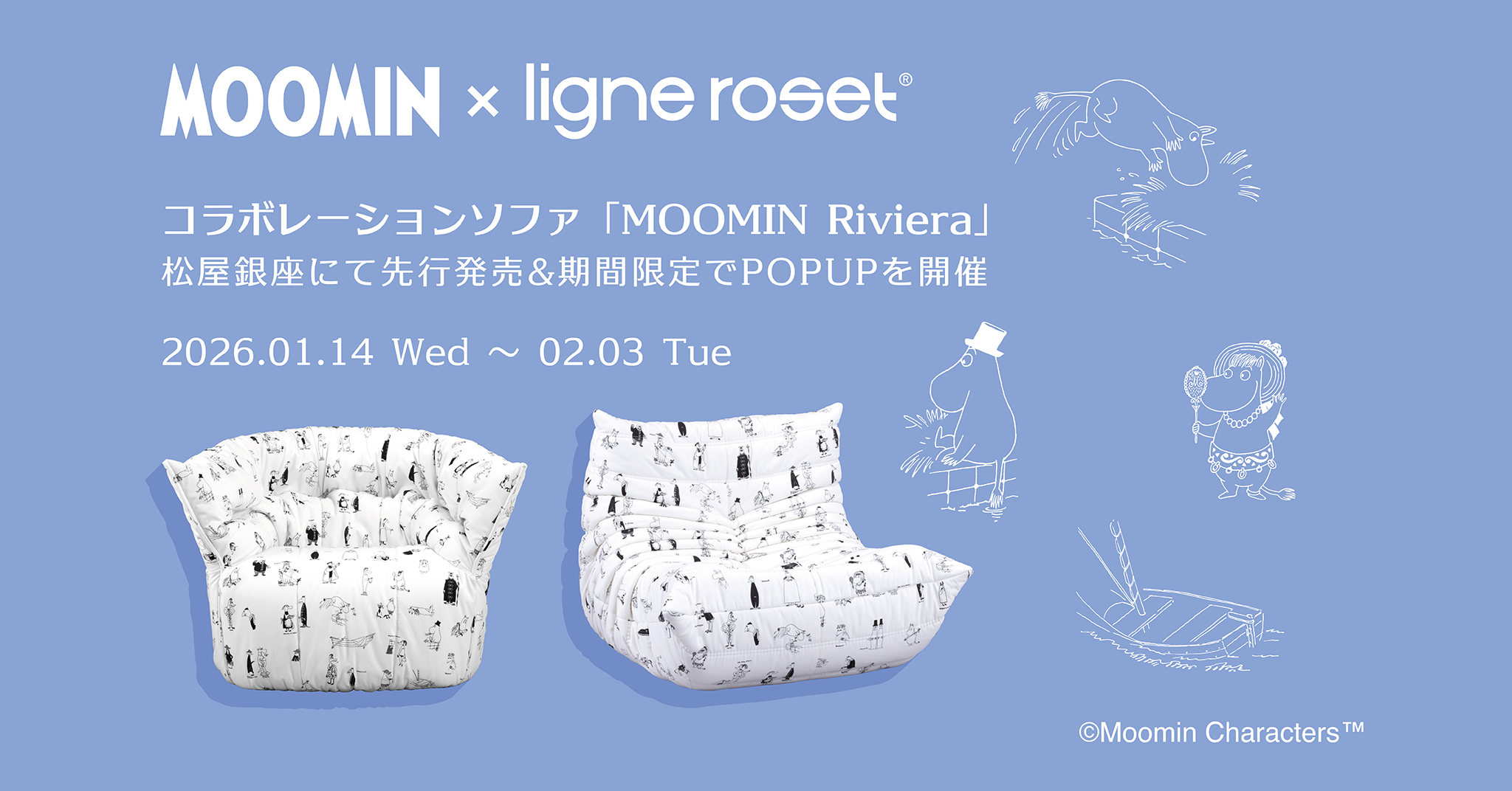 きょろきょろと周りが気になるムーミンとリトルミイ。横顔や後ろ姿がなんとも可愛らしいデザインです。
