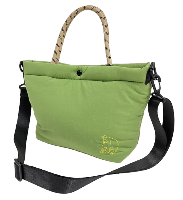 丸いロープハンドルに、ムーミンのカラー刺繍が映えるあざやかなショルダーバッグ。