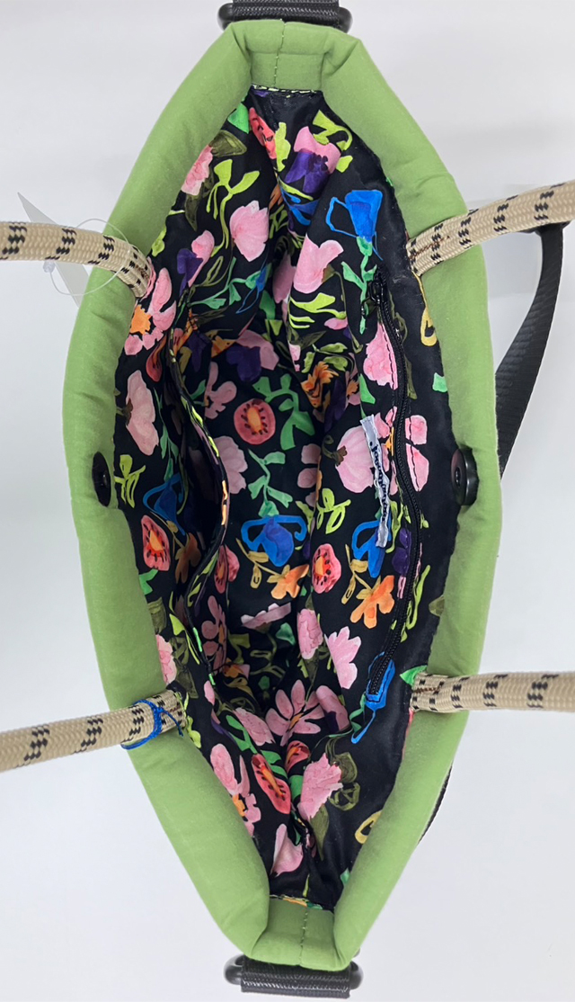 バッグの隙間から覗く、ホコモモラの色鮮やかなテキスタイルもおしゃれ。