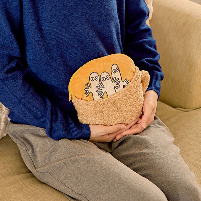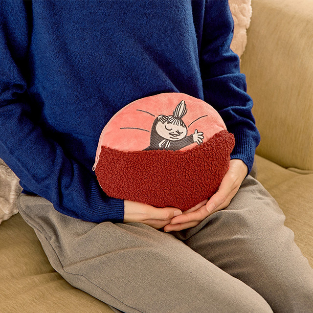 ふわふわ素材にムーミンたちの刺しゅうが入った、モコモコカイロです。
