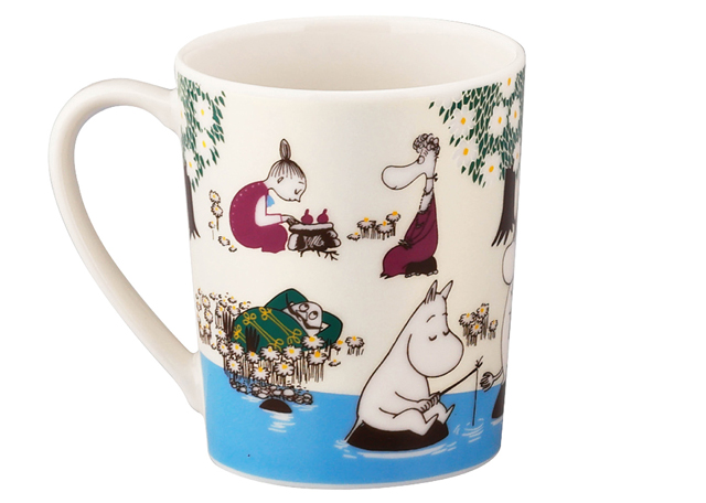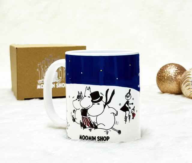 雪に覆われた美しいムーミン谷や、スケートに挑戦するムーミンの仲間たちをデザインしたマグカップ。
