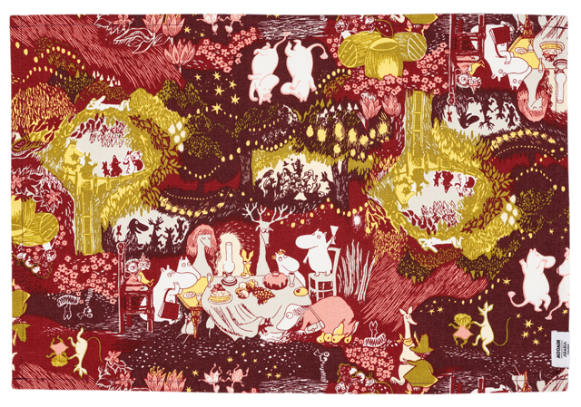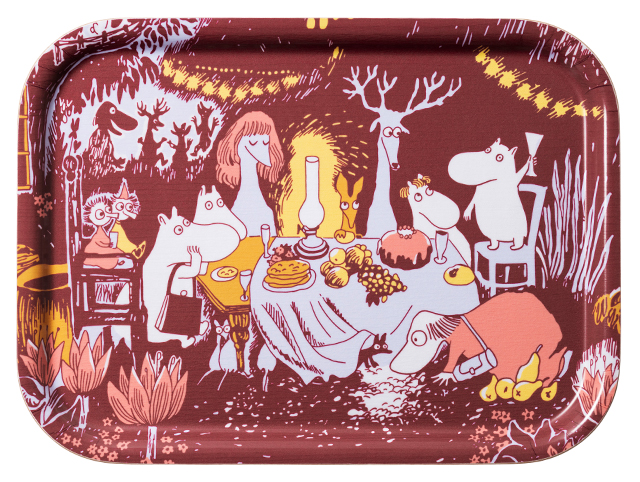 ムーミン谷の住人みんなが集まり乾杯する賑やかでたのしい雰囲気と、ランタンやホタルの灯りに包まれた幻想的な雰囲気の両方を感じていただける、魅力的なデザインです。