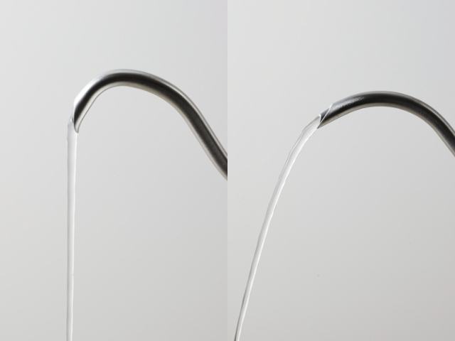 6mm(内径4.5mm)径の細さで、雫のように「ぽたり・ぽたり」と落としたり、糸のようにそっと注ぐことができるため、湯量調節が簡単に。