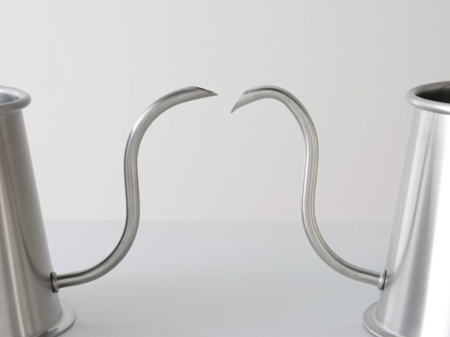 狙ったところに注げるS字形状の極細注ぎ口。ポットをどんなに傾けてもお湯の勢いを抑えてほぼ真下に注げます。