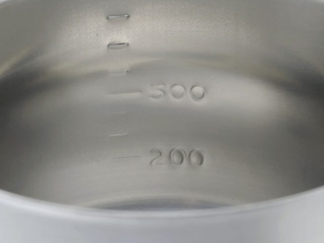 200〜800mlまで100ml単位で目盛りが付いているので人数分のスープ系料理にもぴったり。火の通りが早く、素材の下ゆで等にもちょうどいいサイズは、お料理好きの方にもおすすめです。