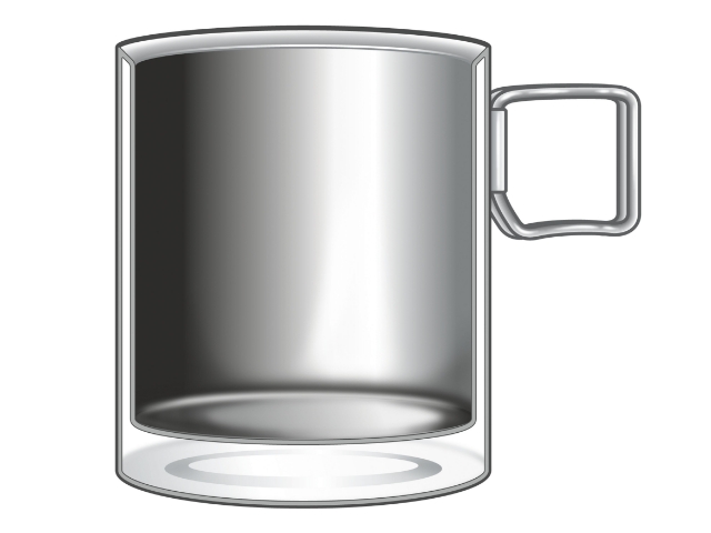 飲み口はカーブゆるやかにカーブした形状で口当たりもなめらか。ハンドルは折りたたむことができ、キャンプなどの移動時にもコンパクトに収納できます。