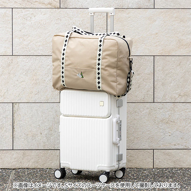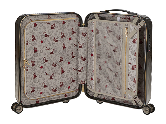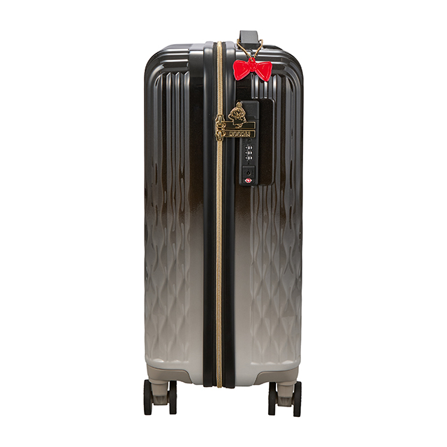 シックなモノトーンをベースに、リトルミイの赤いリボンをイメージしたリフレクトチャームが付いたスーツケース。