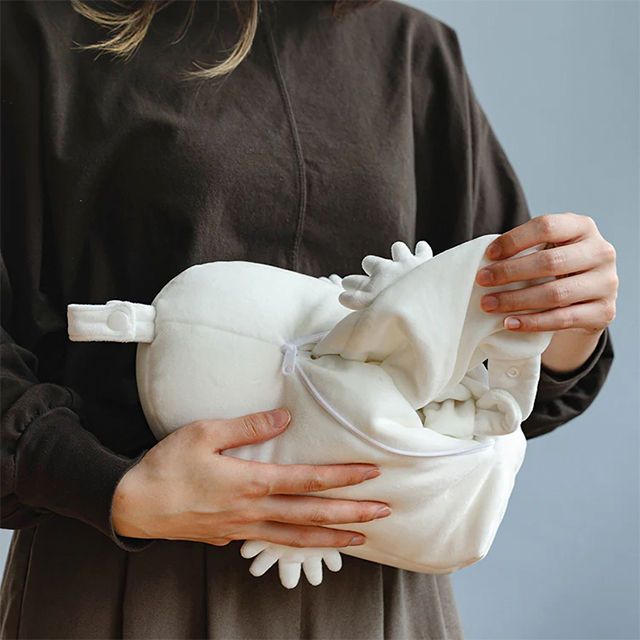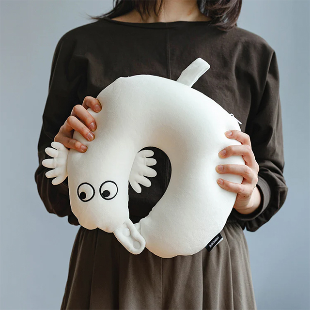 ネックピローにもニョロニョロの形をしたクッションにも変形できる2WAYまくら。