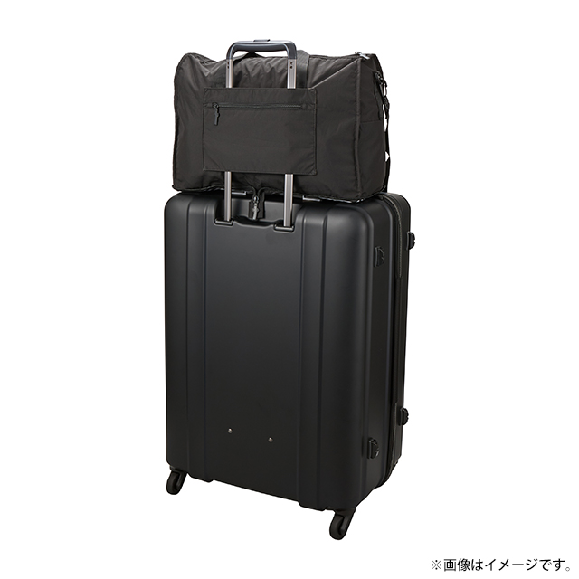 コンパクトに折りたたんで収納でき、キャリーケースに取り付けられるキャリーオン仕様。