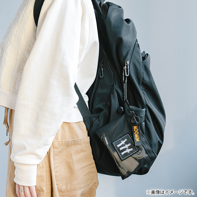 サイズは、たっぷり入るLサイズと、バッグインにも便利なMサイズの2種類。カラーは、シックな印象のブラック(ニョロニョロ)と、中身が見やすい半透明のクリア(スナフキン)の2色展開です。