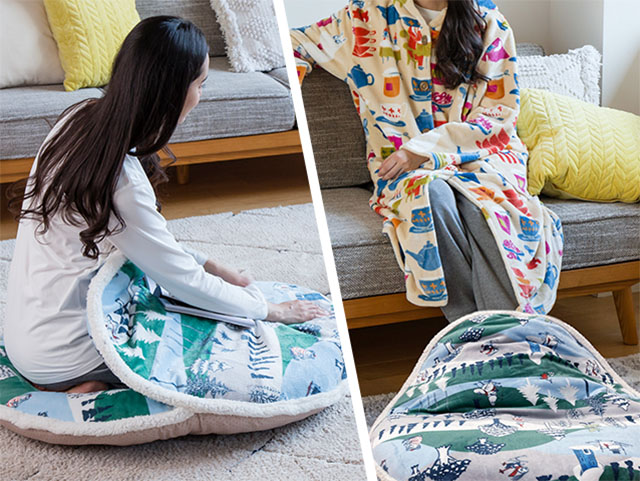 ひざ掛けのように使っても、足だけを入れてぬくぬくするのもオススメ!