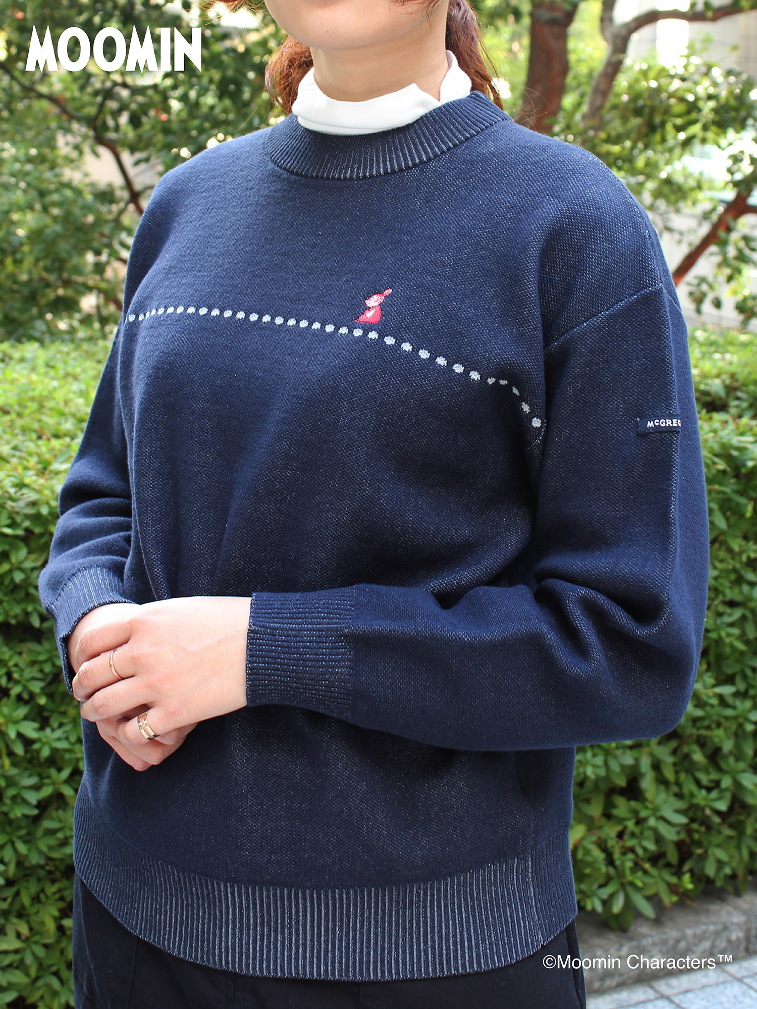 前後に入ったドット柄のジャカードは、リトルミイのワンピースの後ろボタンと、ムーミンが雪に残した足跡をイメージ。