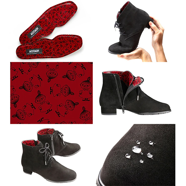 ビロードタッチの牛革ヌバックを使用したシンプルなリトルミイデザインや、こだわりの牛革にスナフキンを型押ししたショートブーツなど、足元のおしゃれを楽しめるラインアップ。