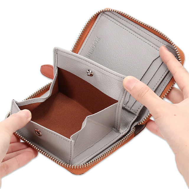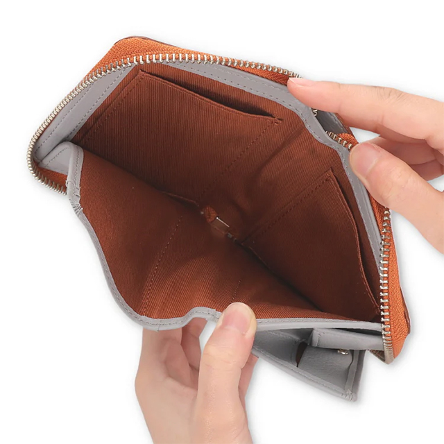 サイドにはお札入れも備え、コンパクトながら収納力バツグンの折り財布です。